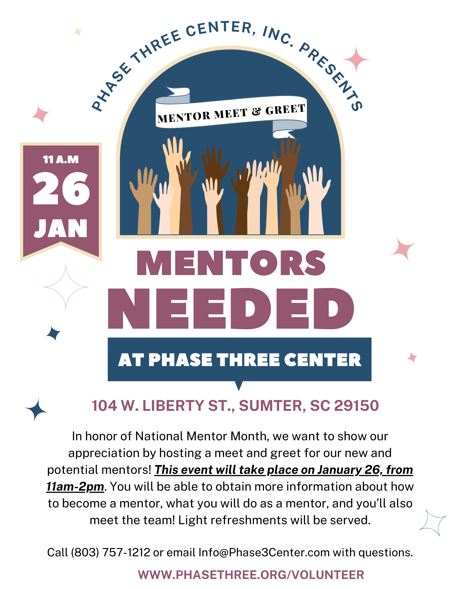 Phase Three Center, Incorporated was established to provide education, mentoring, guidance, and tutoring for at-risk teens and transitional foster children in Sumter, South Carolina, and surrounding areas. We aim to implement innovative ways to educate youth and motivate them to invest in themselves and take better control of their lives. The organization provides all-encompassing mentorship and tutoring programs and services intending to educate the leaders and innovators of the future. The organization provides all-encompassing mentorship and tutoring programs and services intending to educate the leaders and innovators of the future.